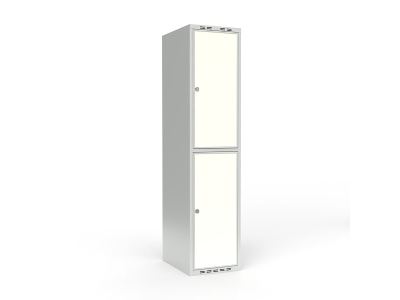 Skoleskab 2x400 Skråt tag, Z-dør Hvid ståldør Greb for hængelås