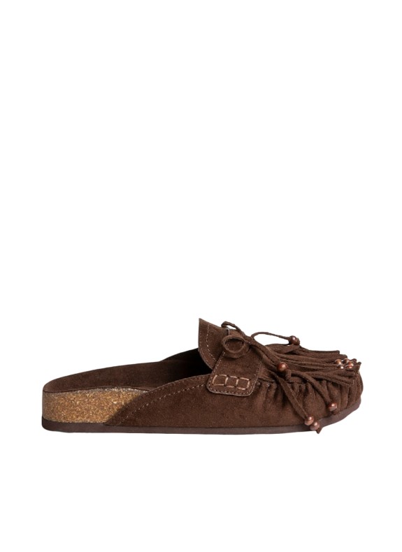 KESLEM - Zueco boho destalonado de ante con flecos para mujer 40