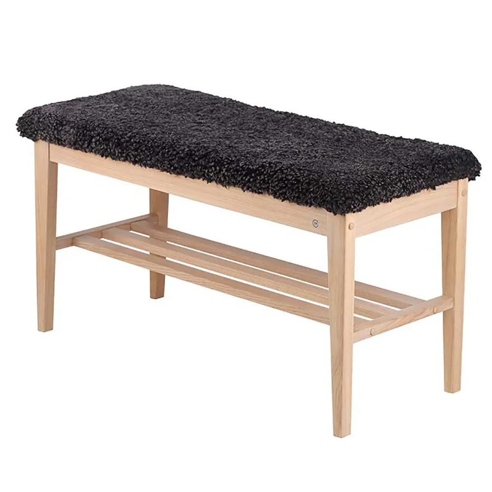 Oscarssons Möbel, Nadja penkki Mustaksi värjätty tammi/ lampaannahka vaaleanharmaa