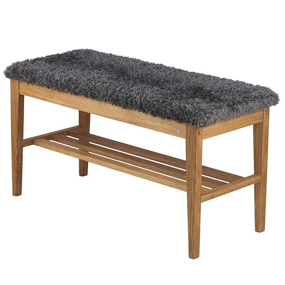 Oscarssons Möbel, Nadja penkki Öljytty tammi/ Lampaannahka look vaaleanharmaa