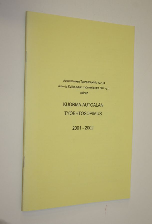Autoliikenteen Työnantajaliitto ry:n ja Auto- ja Kuljetusalan Työntekijäliitto AKT ry:n välinen kuorma-autoalan työehtosopimus 2001-2002