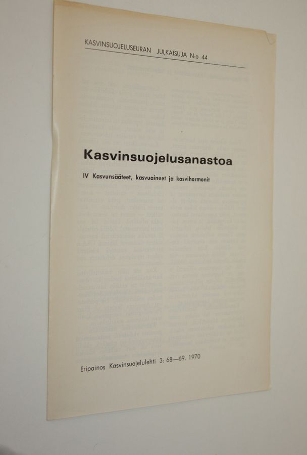 Kasvinsuojelusanastoa 4 : Kasvunsääteet, kasvuaineet ja kasvihormonit (Eripainos Kasvinsuojelulehti 3 : 68-69. 1970)