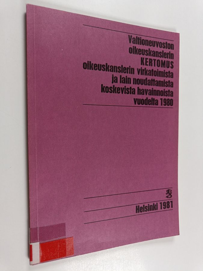 Valtioneuvoston oikeuskanslerin kertomus oikeuskanslerin virkatoimista ja lain noudattamista koskevista havainnoista annettu vuodelta 1980