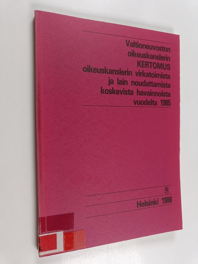 Valtioneuvoston oikeuskanslerin kertomus oikeuskanslerin virkatoimista ja lain noudattamista koskevista havainnoista annettu vuodelta 1985