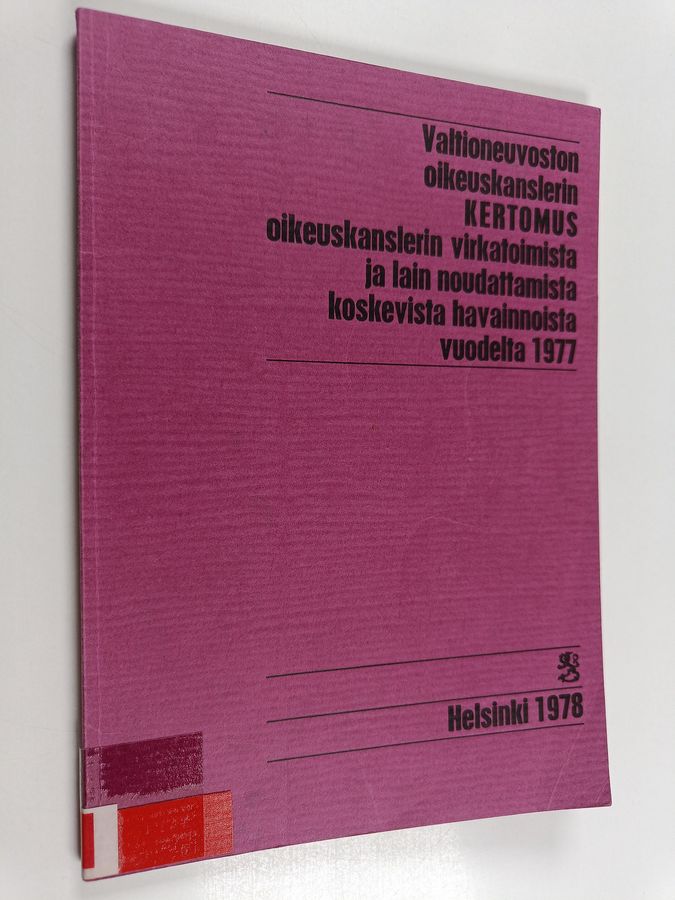 Valtioneuvoston oikeuskanslerin kertomus oikeuskanslerin virkatoimista ja lain noudattamista koskevista havainnoista annettu vuodelta 1977