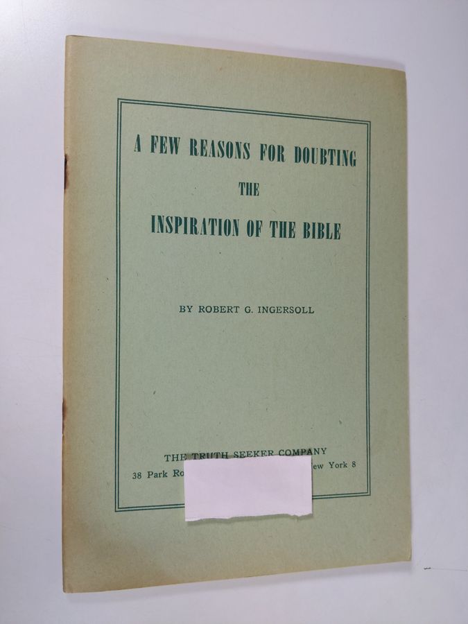 Robert G. Ingersoll : A few reasons for doubting the inspiration of the Bible