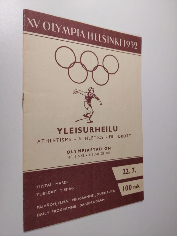 XV Olympia Helsinki 1952 : Yleisurheilu : päiväohjelma tiistai 22.7.