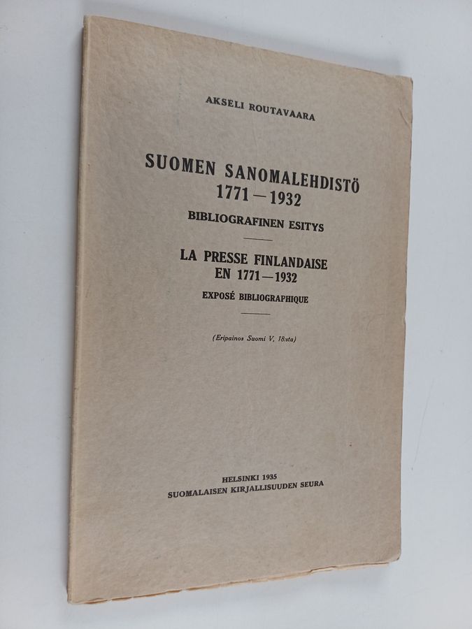 Akseli Routavaara : Suomen sanomalehdistö 1771-1932 : bibliografinen esitys = exposé bibliographique = La presse Finlandaise en 1771-1932