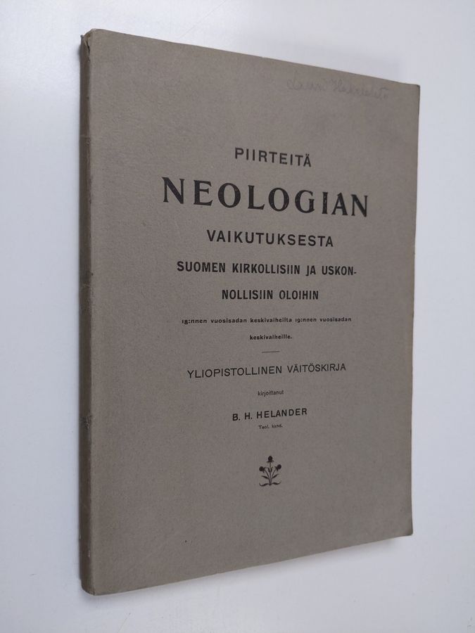 B. H. Helander : Piirteitä neologian vaikutuksesta Suomen kirkollisiin ja uskonnollisiin oloihin 18:nnen vuosisadan keskivaiheilta 19:nnen vuosisadan