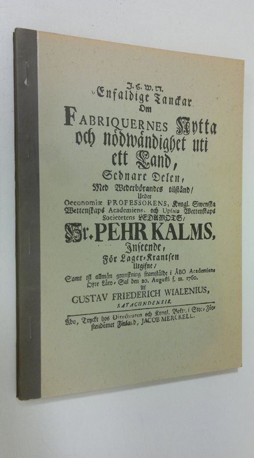 Gustav Friederich Wialenius : Joitakin ajatuksia tehtaitten hyödystä ja tarpeellisuudesta maalle 1-2