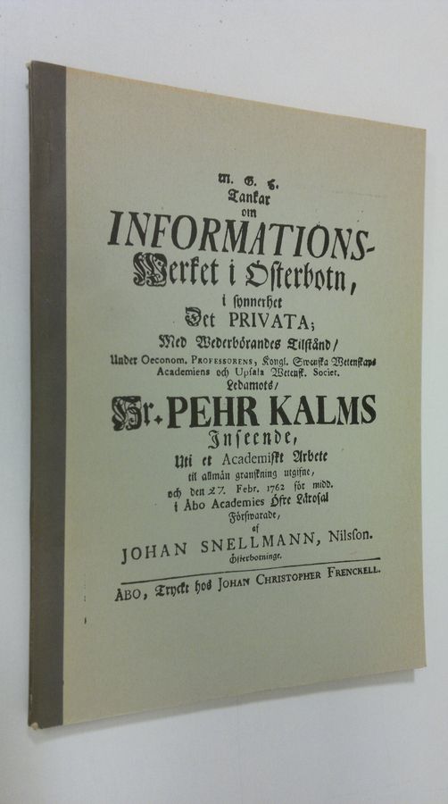 Johannes Nicolai Snellman : Ajatuksia opetustoiminnasta Pohjanmaalla, eritoten yksityisestä (numeroitu) = Tankar om informationswerket i ...