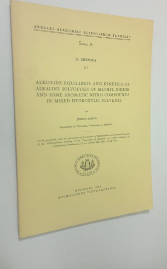 Juhani Murto : Alkoxide equilibria and kinetic of alkaline solvolyses of methyl iodine and some aromatic nitro compounds in mixed hydroxylic solvents