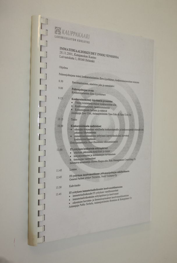 Immateriaalioikeudet insolvenssissa : 28.11.2001 Katajanokan Kasino Helsinki