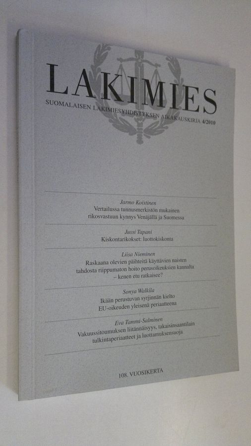 Lakimies 4/2010 : Suomalaisen lakimiesyhdistyksen aikakauskirja