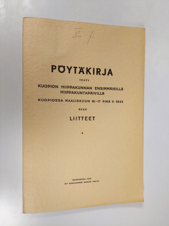 Pöytäkirja tehty Kuopion hiippakunnan ensimmäisillä hiippakuntapäivillä Kuopiossa maaliskuun 16-17 p:nä 1943 sekä liitteet