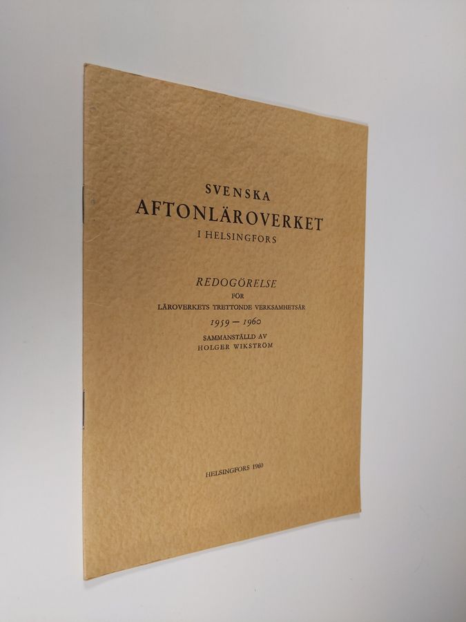 Holger Wikström : Svenska aftonläroverket i Helsingfors : Redogörelse för läroverkets trettonde verksamhetsår 1959-1960