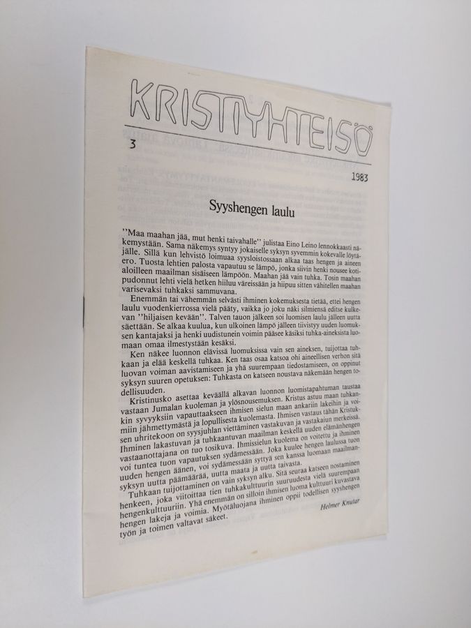Kristiyhteisö 3/1983 : Syyshengen laulu