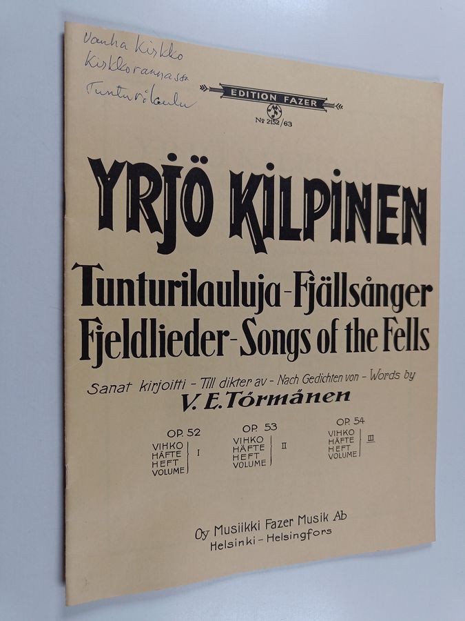 Yrjö Kilpinen : Tunturilauluja = Fjällsånger = Fjeldlieder = Songs of the fells