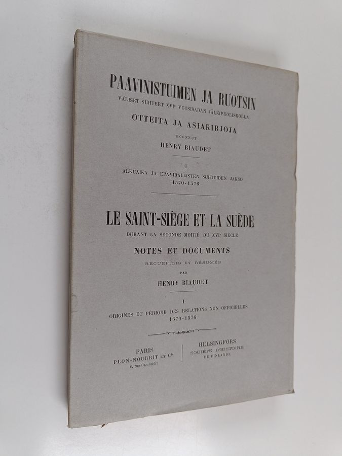 Henry Biaudet : Paavinistuimen ja Ruotsin väliset suhteet XVIe vuosisadan jälkipuoliskolla, otteita ja asiakirjoja : 1 Alkuaika ja epävirallisten ...
