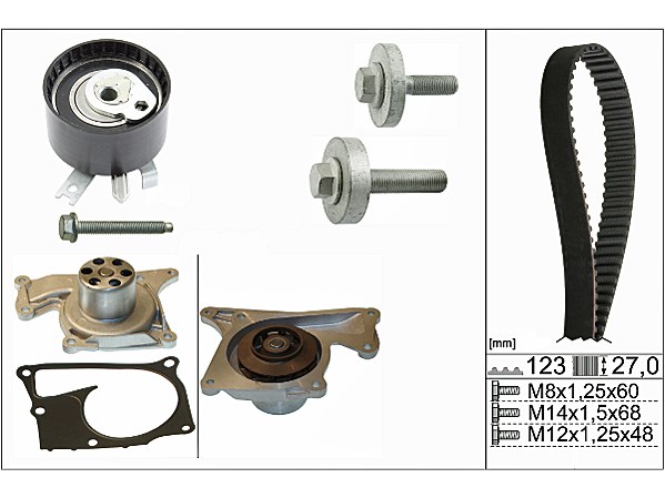 Vesipumppu + jakohihnasarja - dacia, nissan, renault - OE 11 9A 025 52R, 119A02552R, 13 07 048 05R