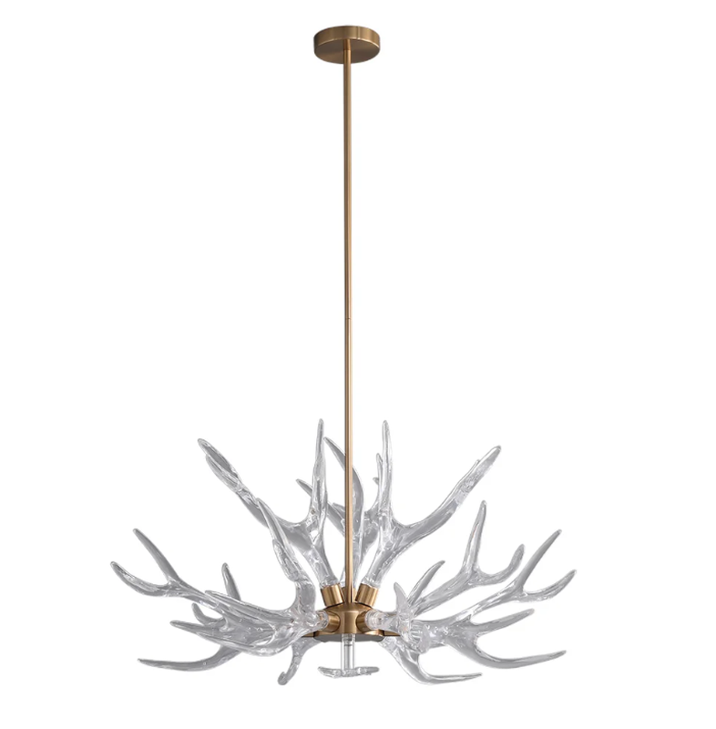 Lustre de plafond en résine avec 9 lumières en forme de bois de cerf doré