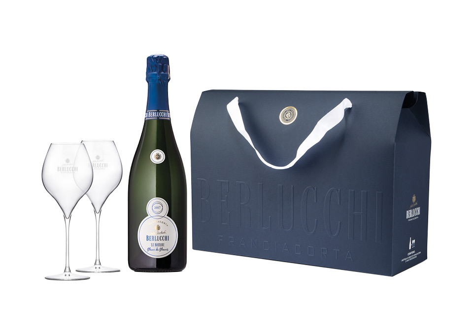Berlucchi '61 Nature 0,75 ℓ, Emballage avec des verres