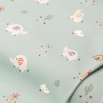 Tissu pour imperméable "éléphants", menthe/coloré