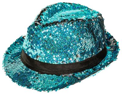 Chapeau à paillettes réversibles, bleu/argenté