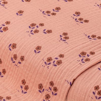 Tissu mousseline/double gaze "petites fleurs", pêche/coloré