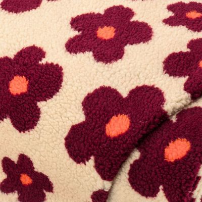 Tissu imitation fourrure d’agneau "fleurs", écru naturel/coloré