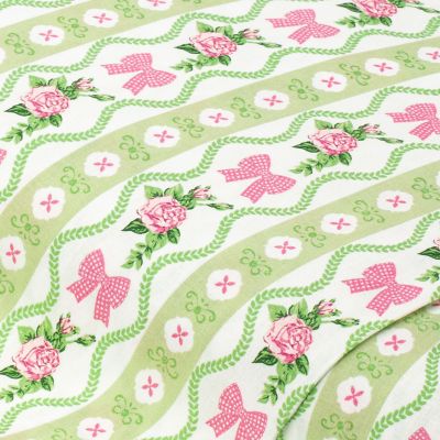 Tissu coton "roses et nœuds", de la série "Mona", blanc/coloré