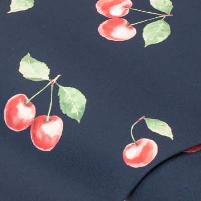 Toile enduite canvas "cerises", bleu foncé/coloré