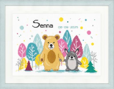 Tableau à broder "ourson et lapin ", 32 x 22 cm