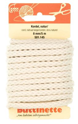 buttinette Cordon pour vêtements, écru naturel, 8 mm Ø, longueur : 5 m