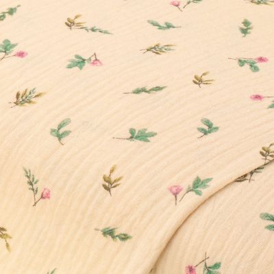 Tissu mousseline/double-gaze "fleurs", crème/coloré
