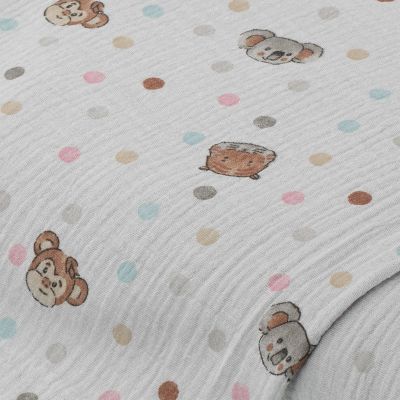 Tissu mousseline/double-gaze "têtes d'animaux", gris/coloré,