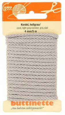 buttinette Cordon pour vêtements, gris clair, 4 mm Ø, longueur : 5 m