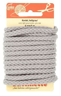 buttinette Cordon pour vêtements, gris clair, 8 mm Ø, longueur : 5 m