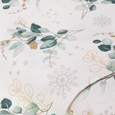 Linge de table épongeable/toile cirée "flocons de neige", vert/chiné/doré