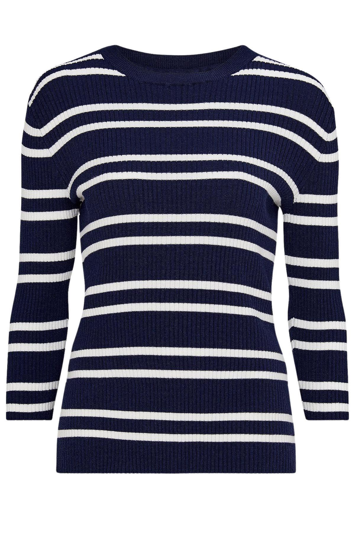 Ellos Womens Striped Ribbed Sweater - Navy Cotton - Size UK 20-22 (womens) | Ellos Sale | Discount Designer Brands