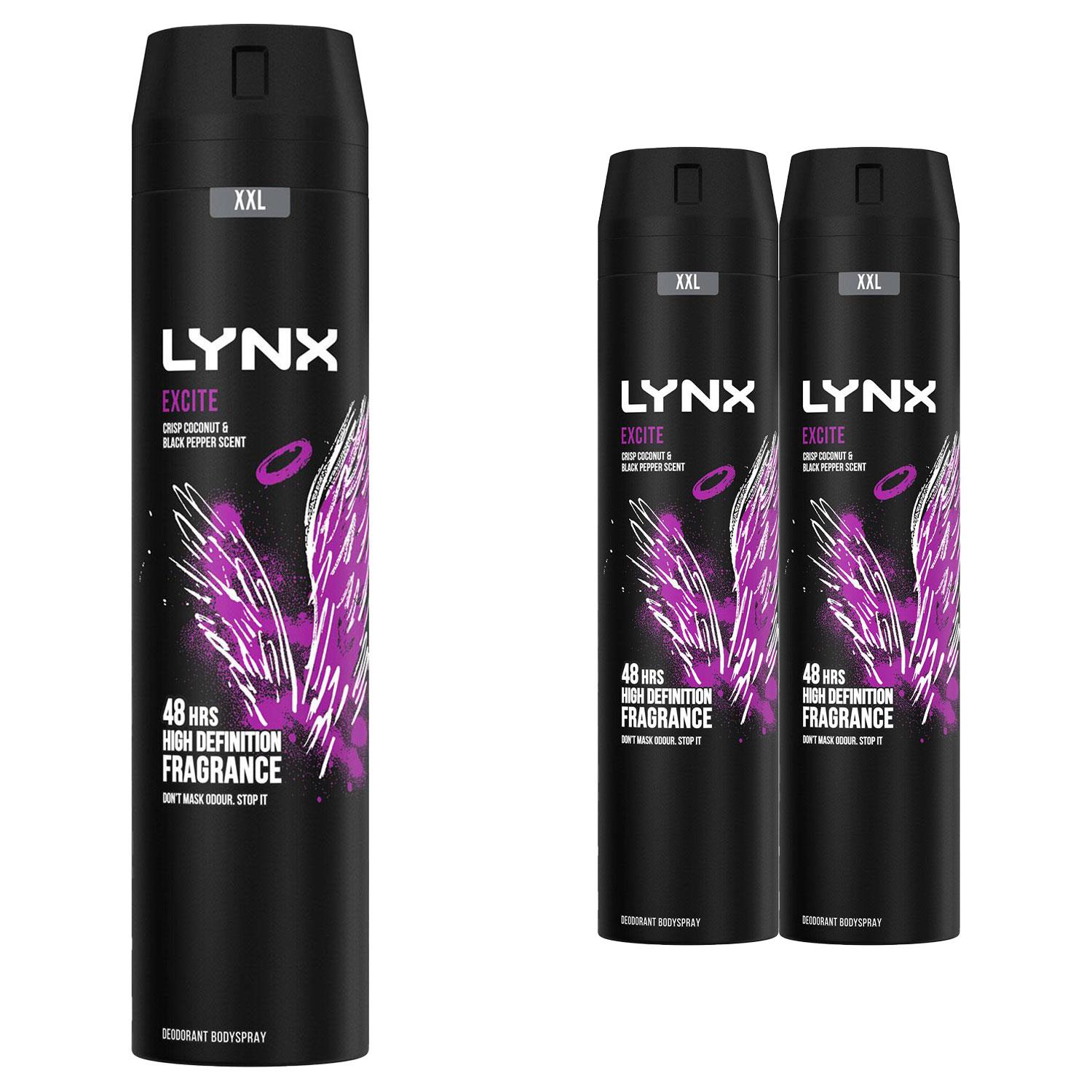 Lynx Mens XXL Excite 48-Hour High Definition Fragrance Body Spray Deodorant, 3x250ml - Size 250 ml | Lynx Sale | Discount Designer Brands