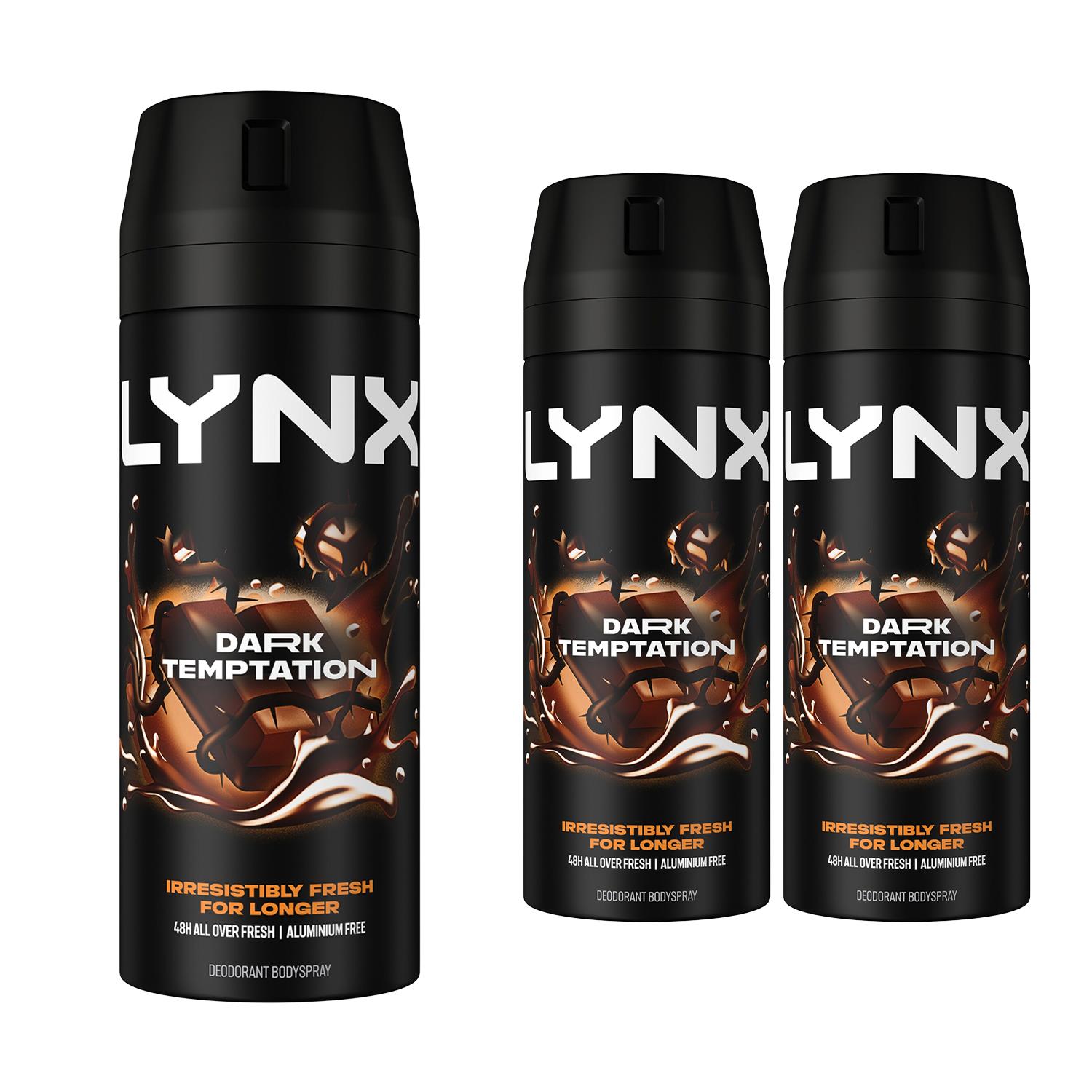 Lynx Mens Body Spray Dark Temptation 48-H High Definition Fragrance Deo, 3x150ml - Size 150 ml | Lynx Sale | Discount Designer Brands