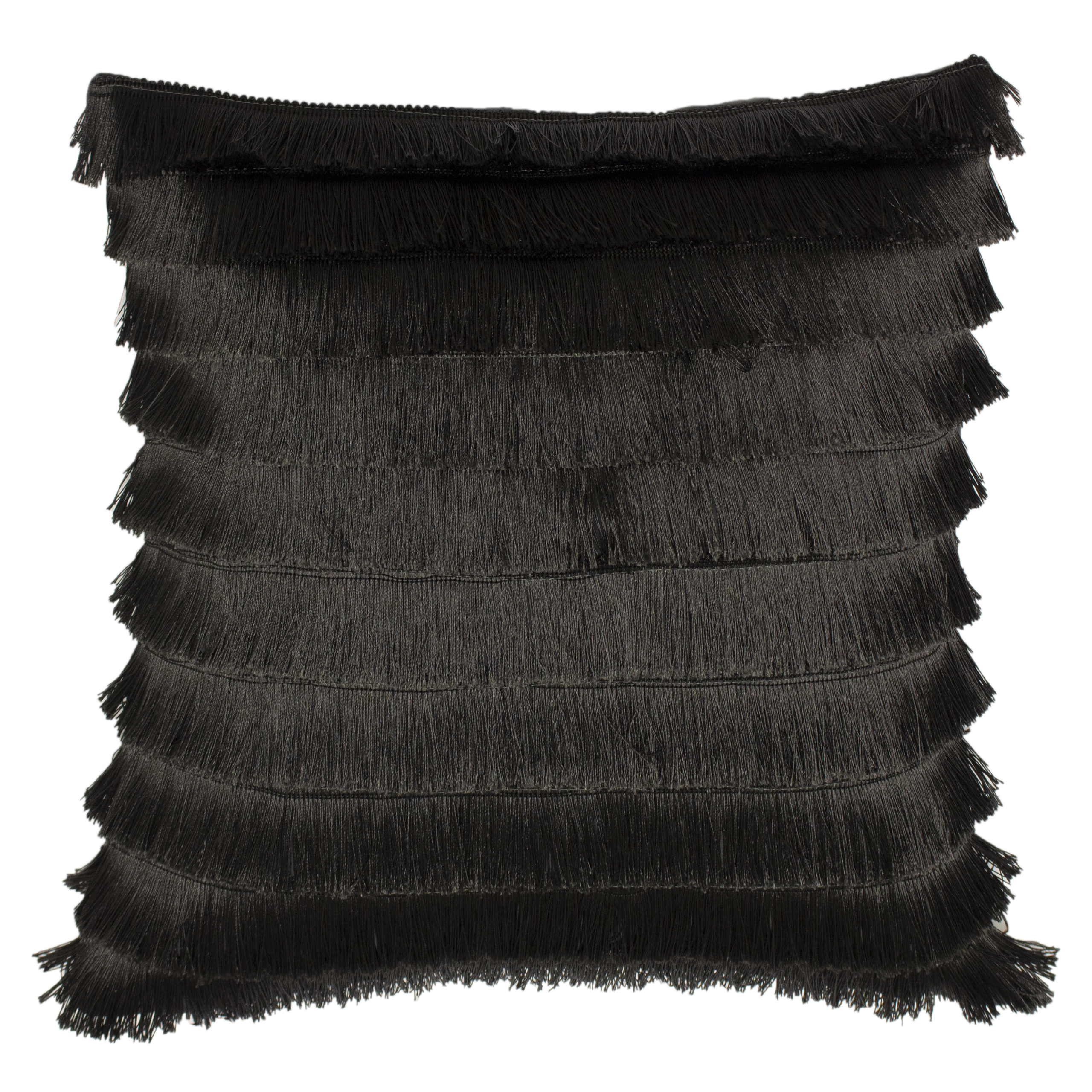 furn. Pritta Cotton Embroidered Tasselled Feather Filled Cushion - Black - One Size | furn. Sale | Discount Designer Brands