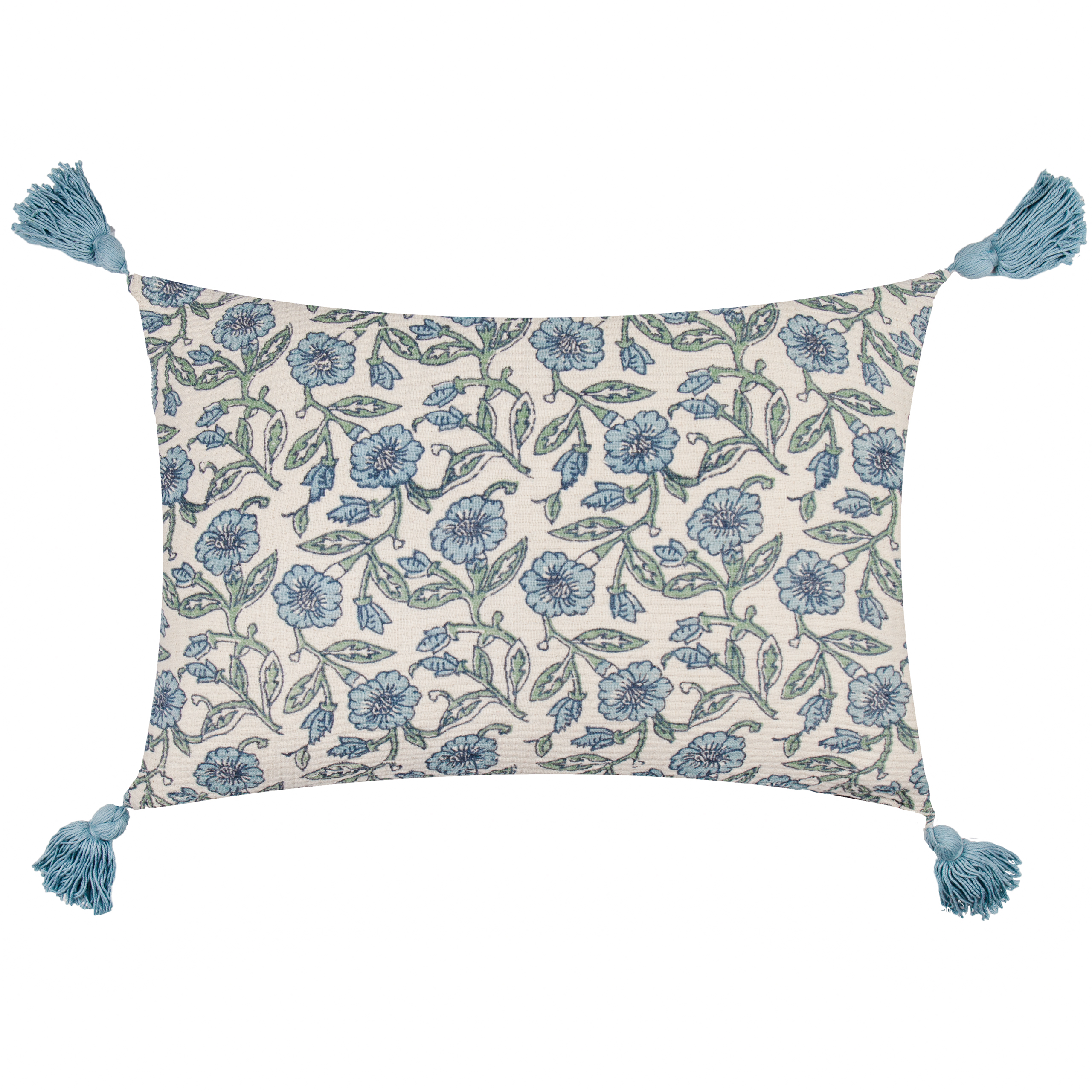 Paoletti Delphine Floral Tasselled Cushion Cover - Blue Multi Cotton - One Size | Paoletti Sale | Discount Designer Brands