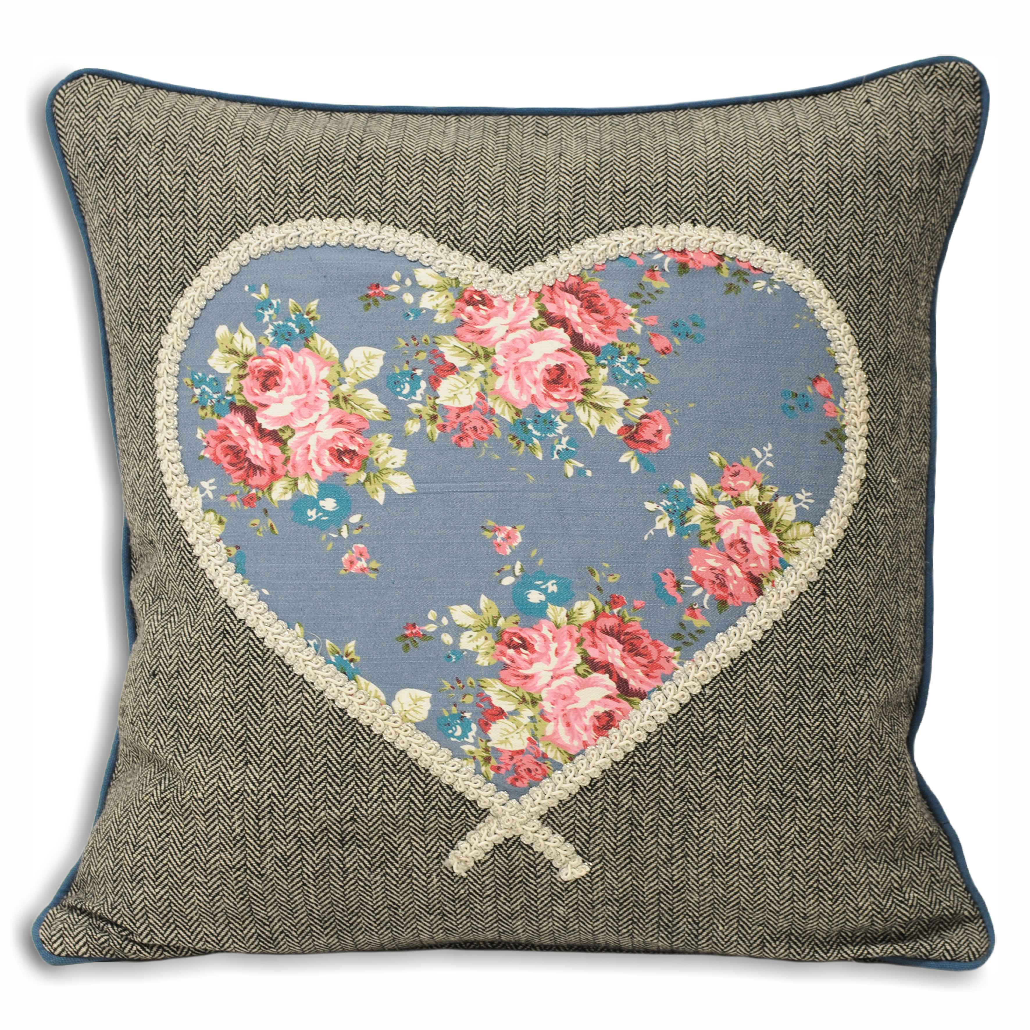 Paoletti Sweet Cottage Heart Cushion - Blue - Size 45 cm x 45 cm | Paoletti Sale | Discount Designer Brands