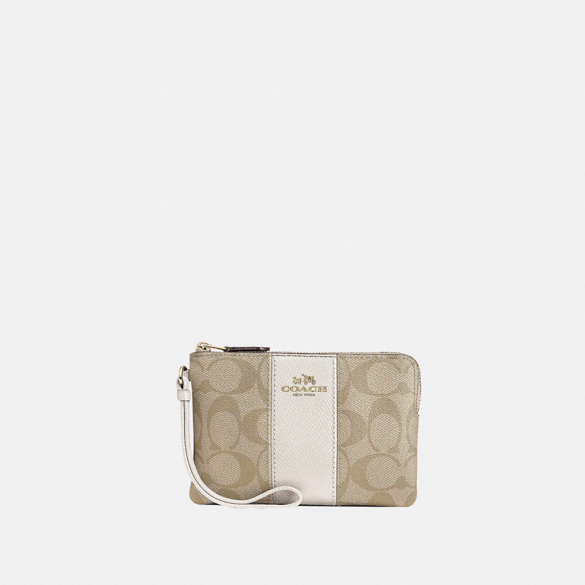 Coach Womens Signature Pvc With Leather Stripe Corner Zip Bag - Beige - One Size | Coach Sale | Discount Designer Brands