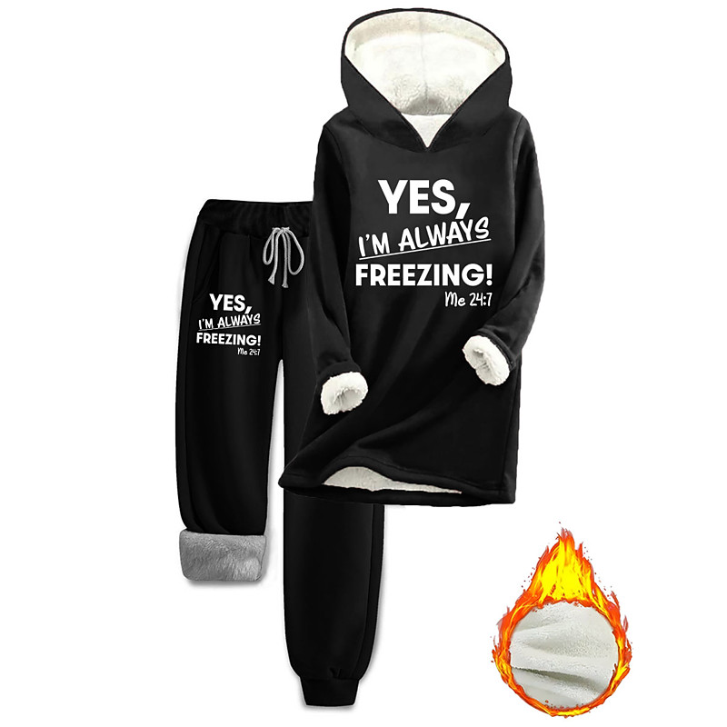 Women's Daily Stylish Two Piece Sets Tracksuit Pants Sets Long Sleeve Hooded Graphic Letter Drawstring Print Casual Daily Black Pink Dark Pink Fall Regular Fit