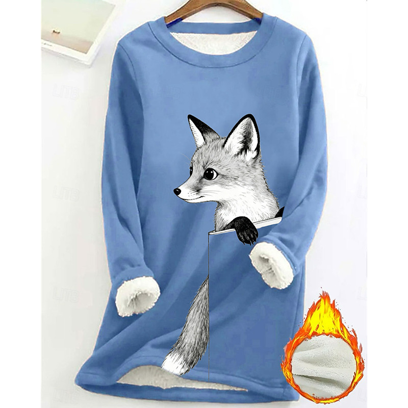 Women's Pullover Sweatshirt Animal Fashion Basic Casual Long Sleeve Crew Neck Long Tops Street Dailywear Casual Print Fleece Lined Black Yellow Pink Dark Pink Blue Fall Winter