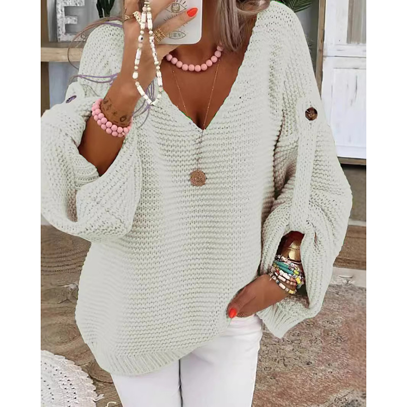 Women's Sweater Pullover Streetwear Casual Solid Color V Neck Knitted Long Sleeve Regular Tops Knit Daily Holiday Going out Black White Fall Winter