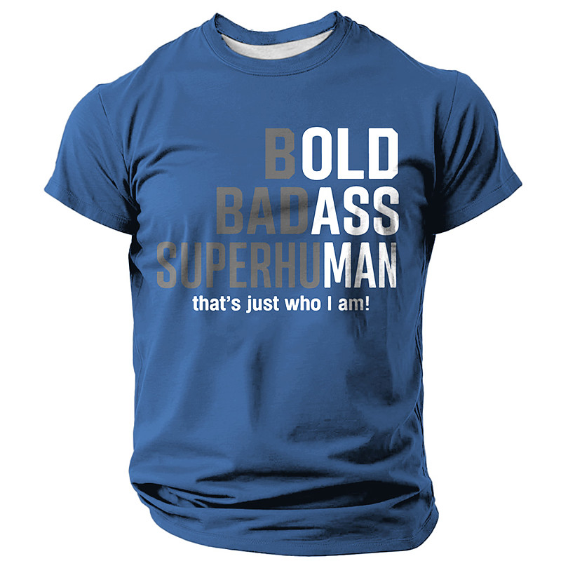 Mens Short Sleeve Graphic Tee: Bold Badass Superhuman 'That's Just Who I Am' Lifestyle Slogan Shirt